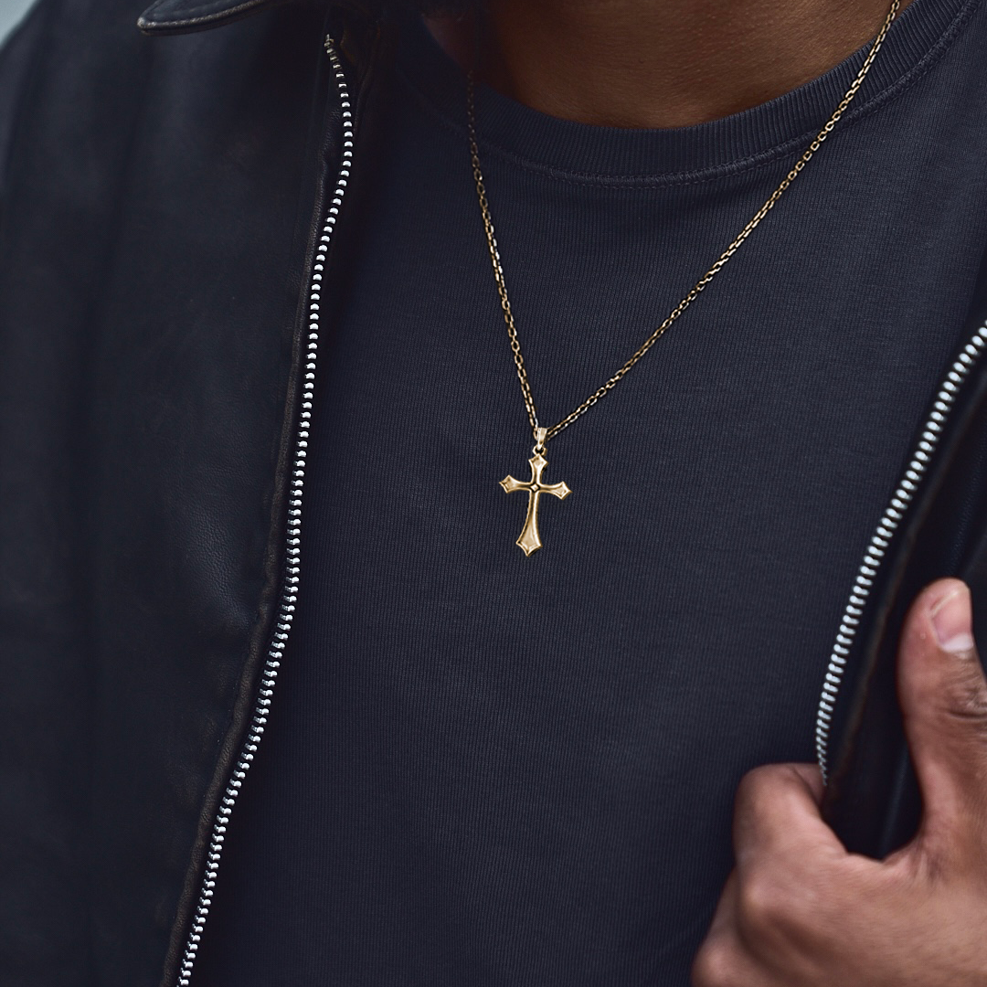 Gothic Cross Pendant – Silver Crucifix Necklace for Men, Religious Faith Jewelry, Confirmation or Communion Gift, Spiritual Symbolic Pendant